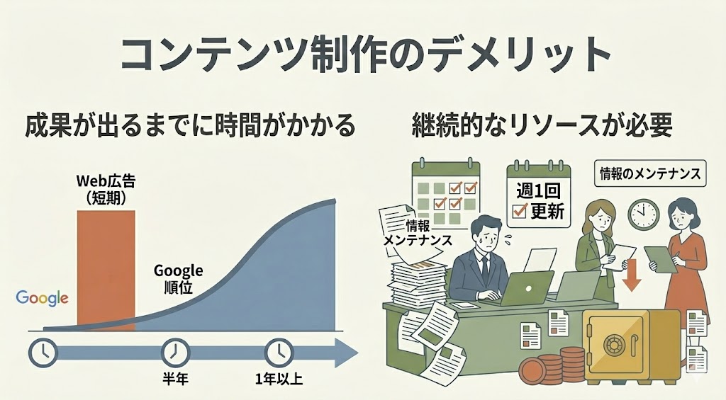 続いては、コンテンツ制作のデメリットを2つ挙げます。