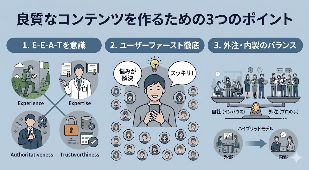質の高いコンテンツを作るには、押さえておきたいポイントがあります。
