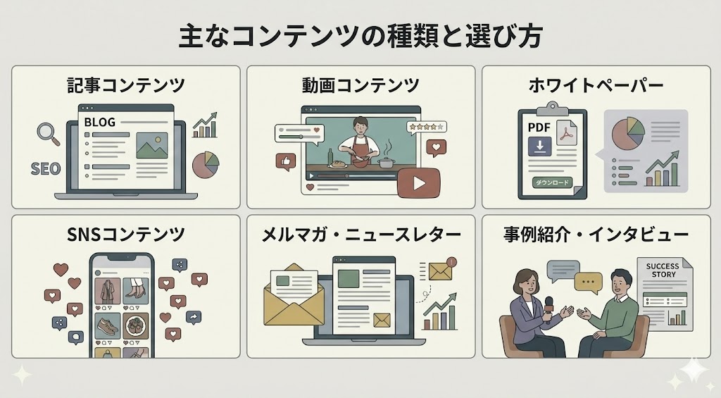 コンテンツにはいくつかの形式があり、それぞれ得意なことが異なります。