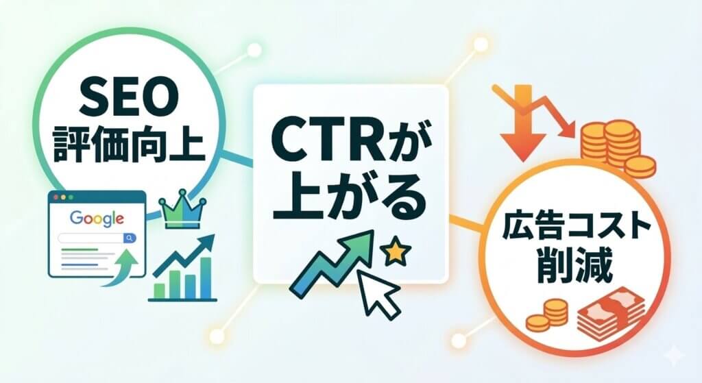 SEO(自然検索)において、CTRの高さはGoogleからの評価をさらに押し上げます。