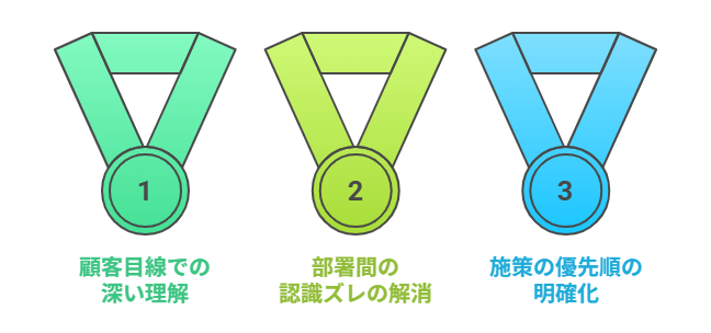 カスタマージャーニーマップの作成には時間と労力がかかりますが、それ以上の大きなメリットがあります。ここでは、主なメリットを3つ見ていきましょう。